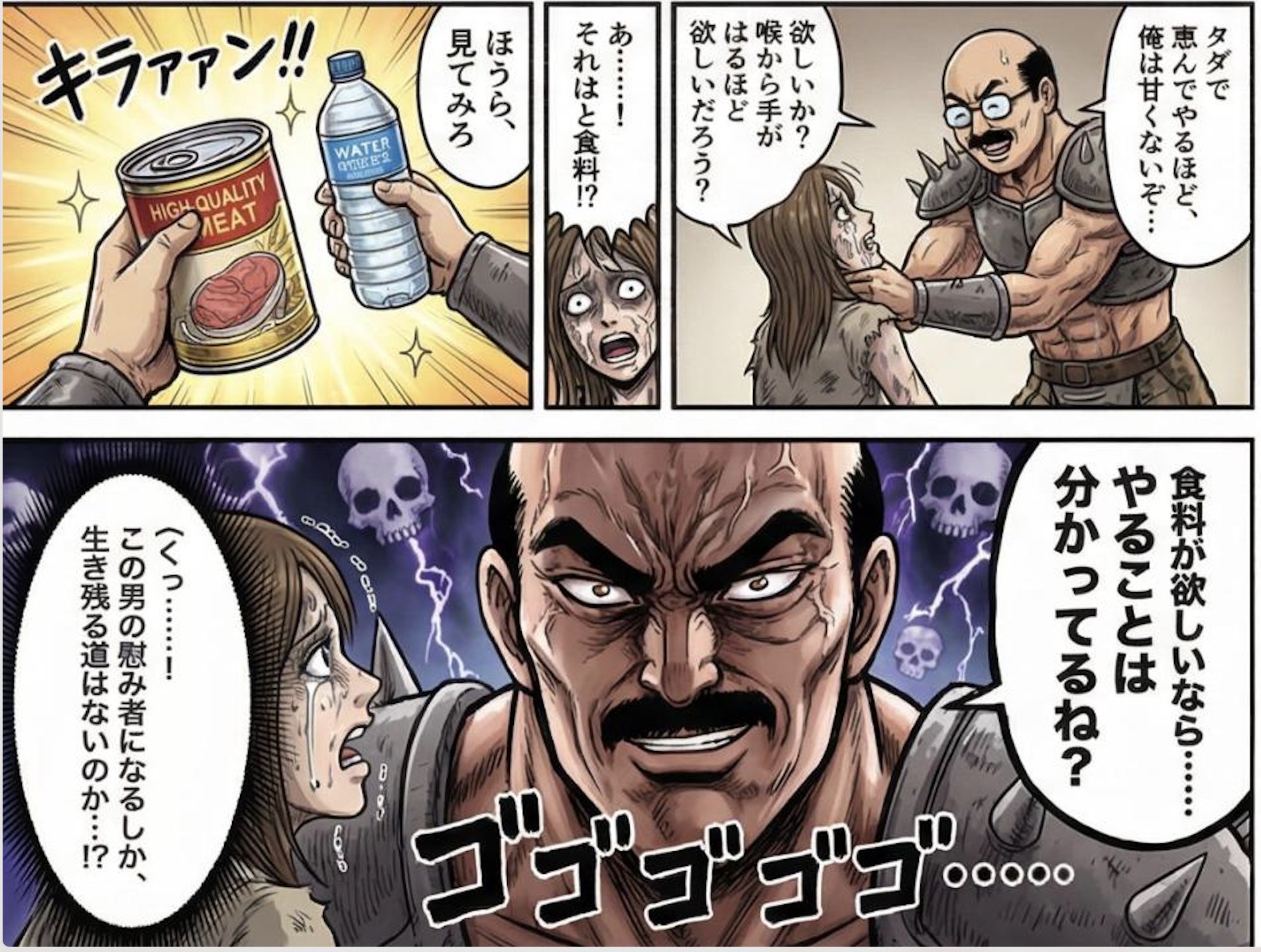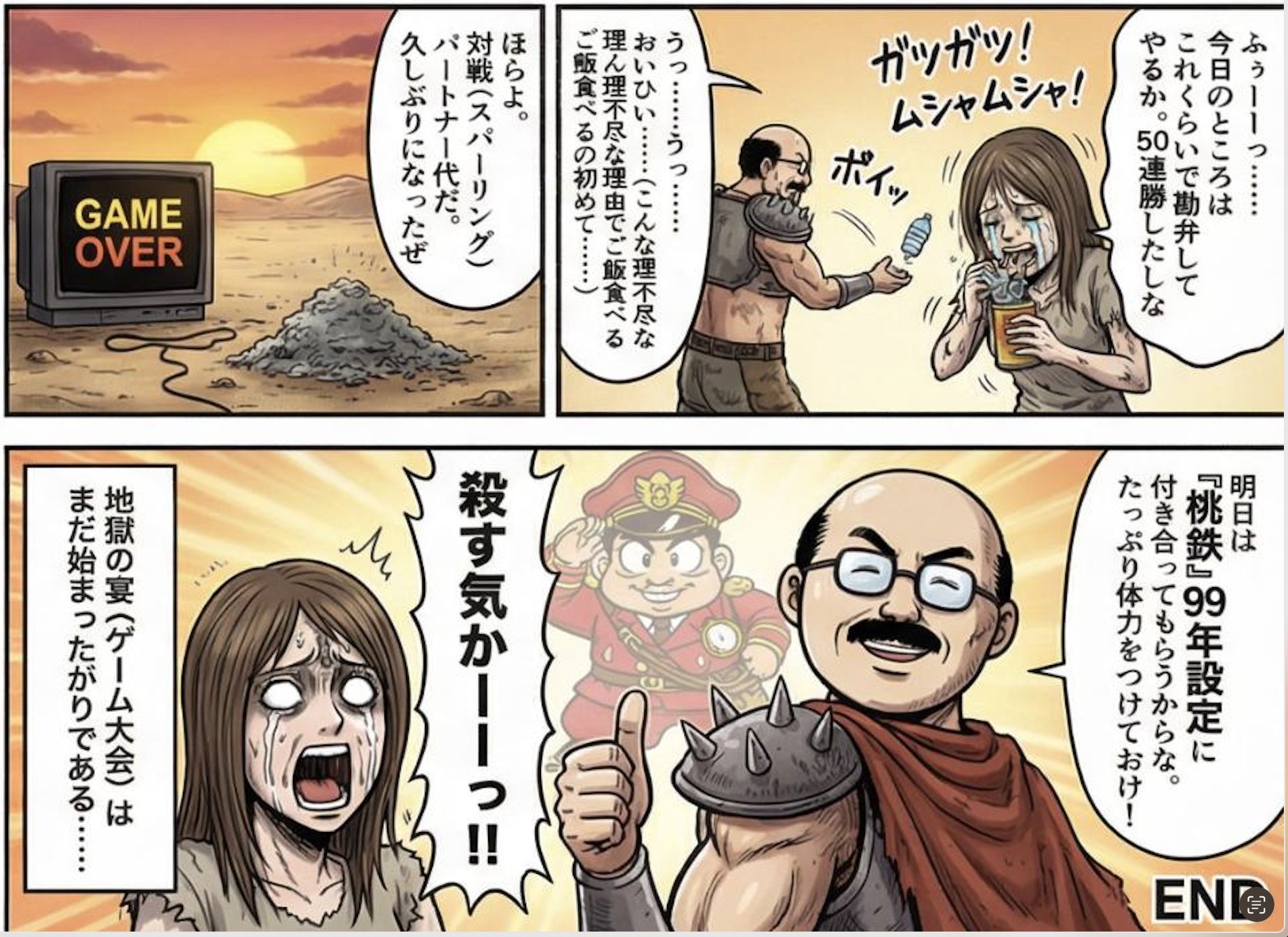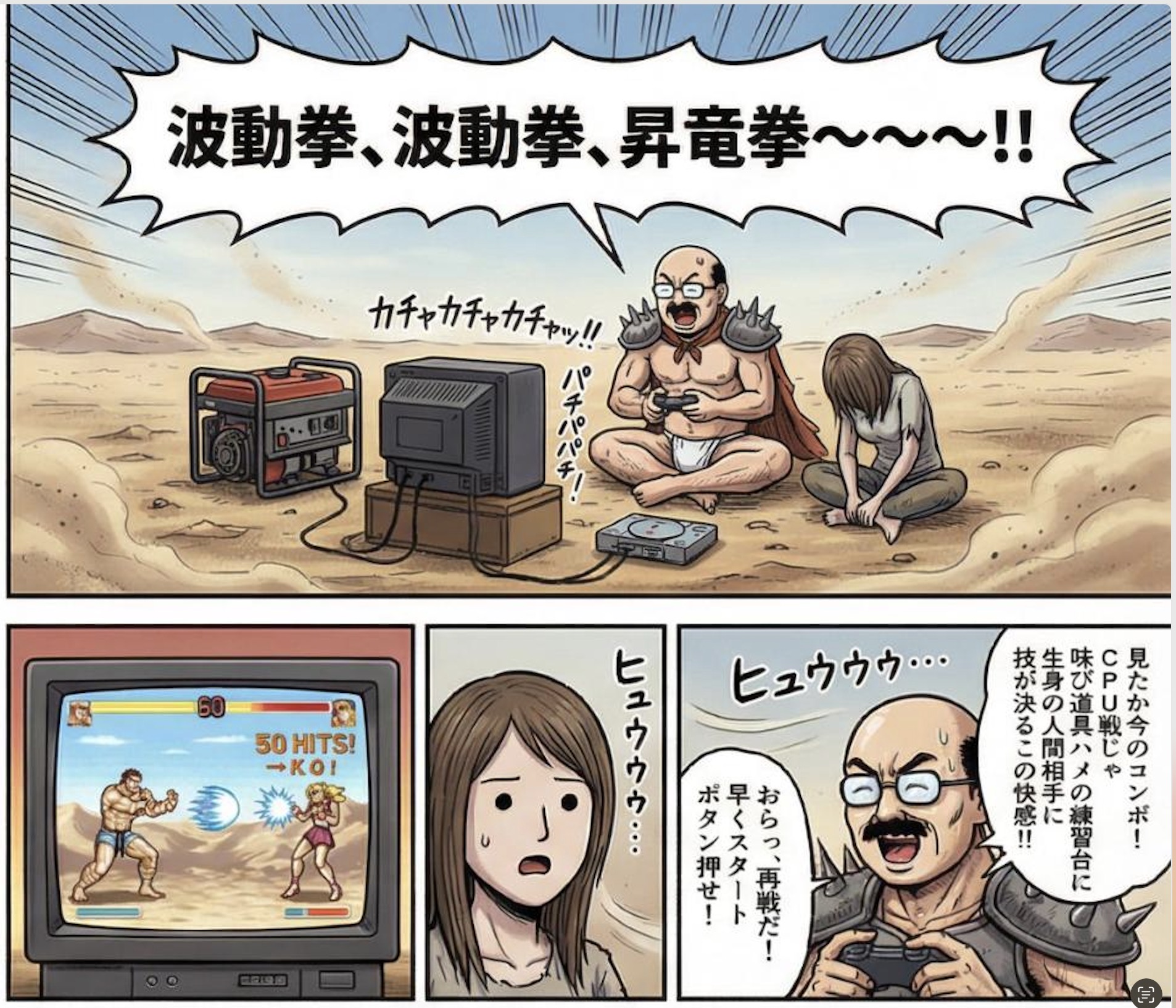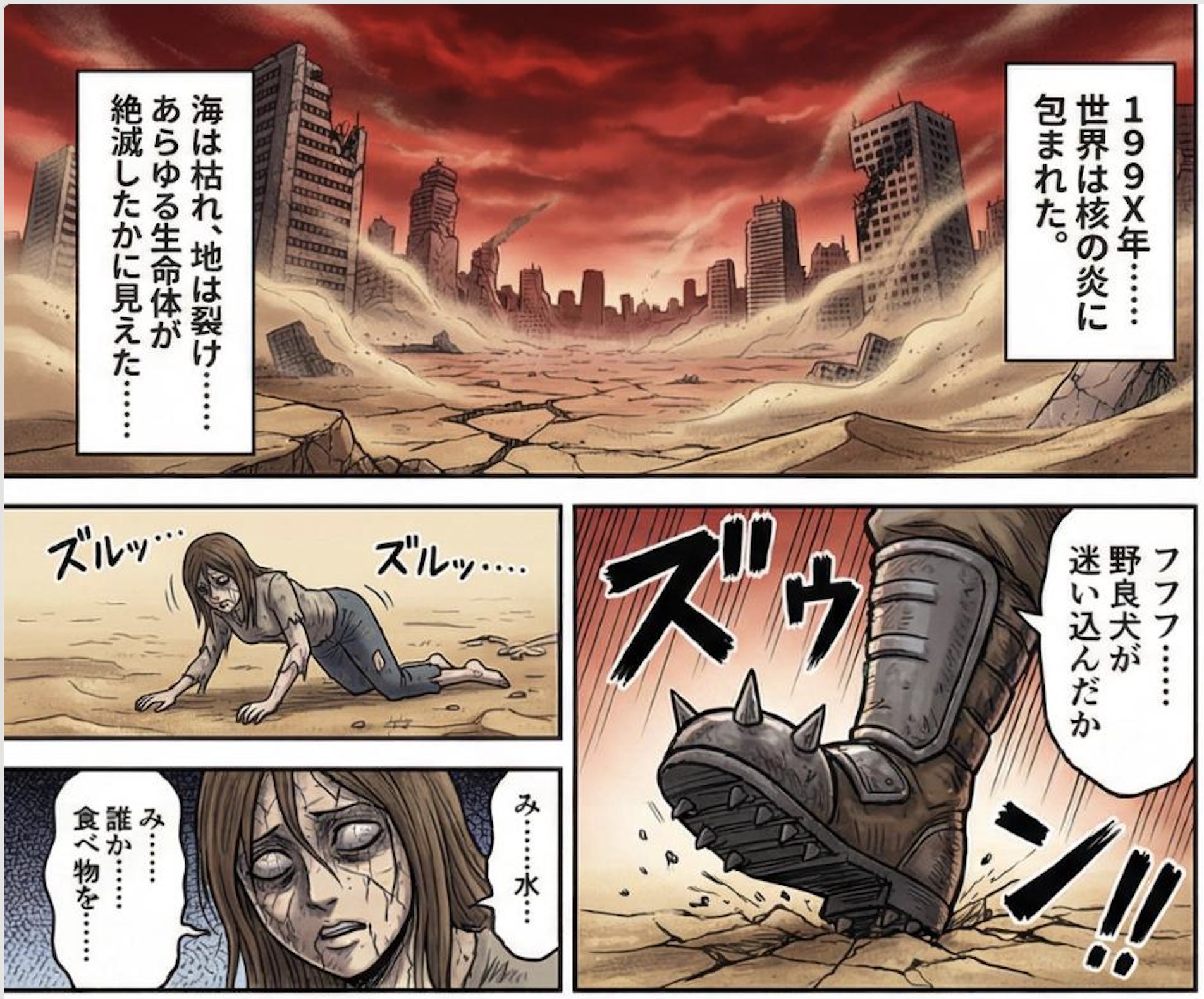 Nano Banana pro先輩がアメリカ製なので、コマ割りが左上から読む順番になってしまうのですが。