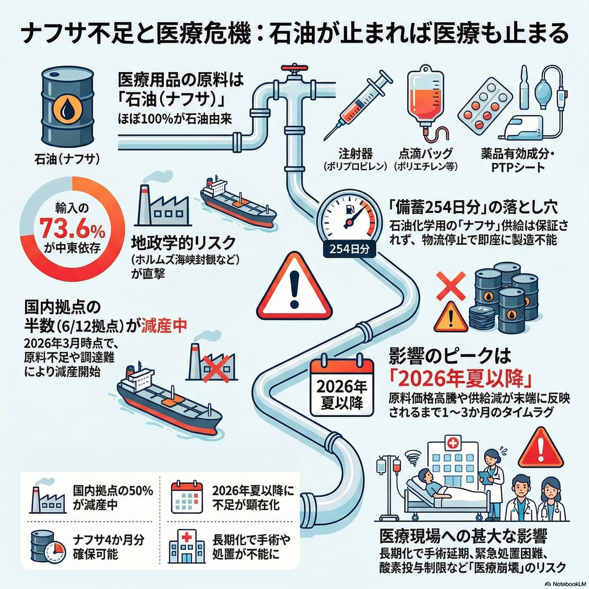 あとは、まぁ知ってると思いますが、ナフサ不足で医療が終わるという話。