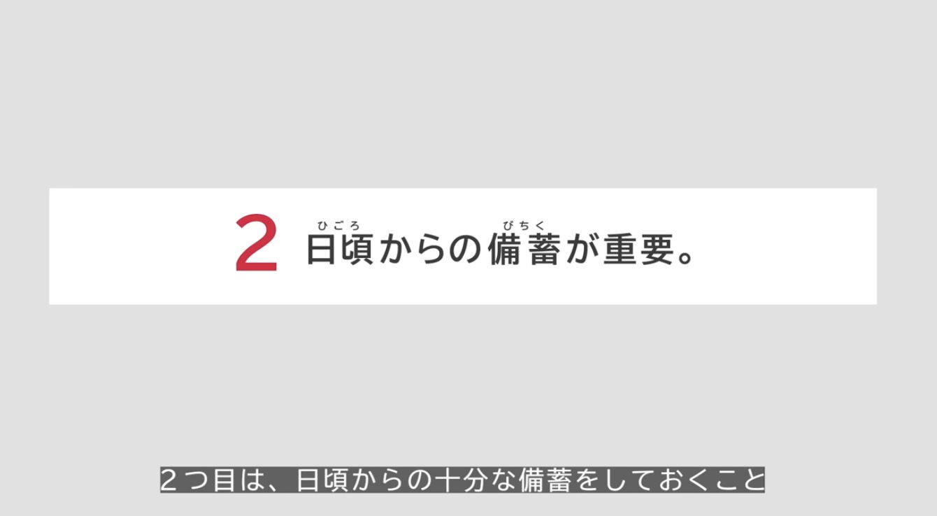 インフラが機能しなくなるから、日頃の備蓄が重要と言ってます。
