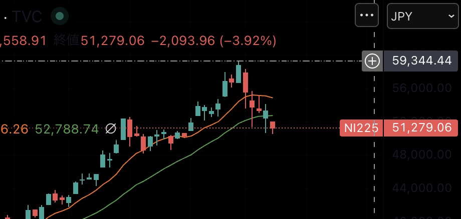 一時期、日経平均6万円行きそうなところからの今日5万千円台。