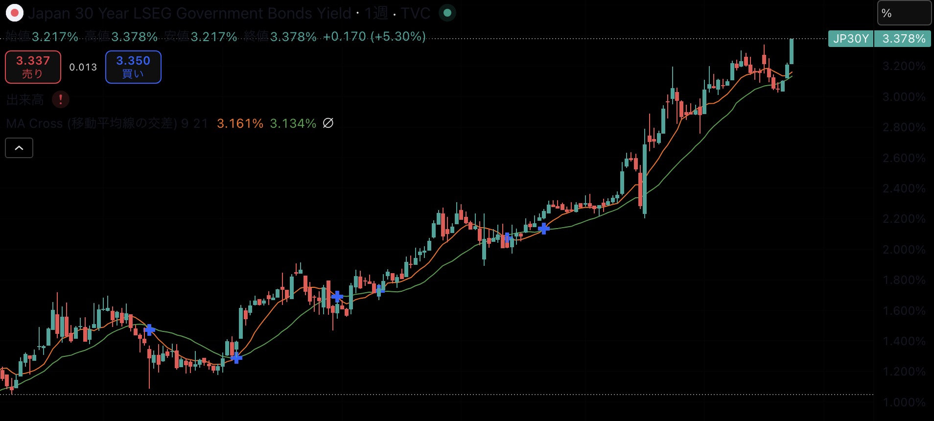 日本国債の30年物の金利が3.3%まで急上昇してます。