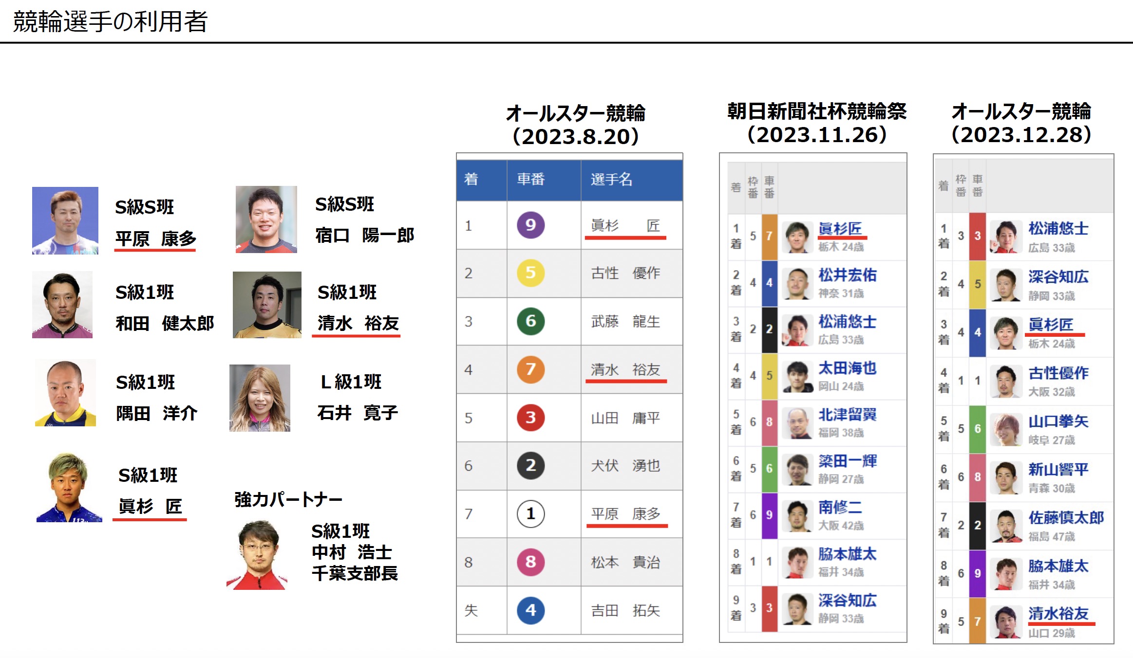 色んな競輪選手が使うようになった。(赤線が使ってる選手)
