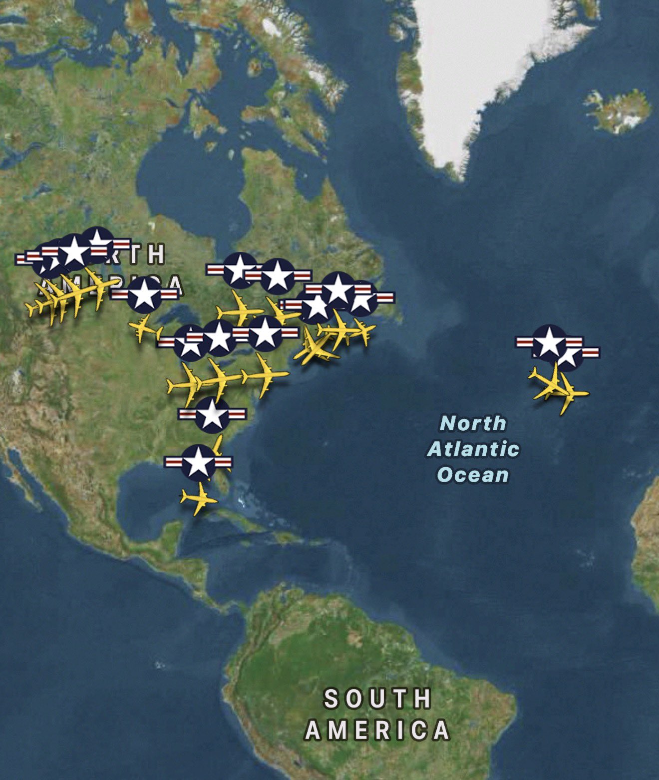 多くのアメリカの航空機が中東を目指してるのが見て取れる。
