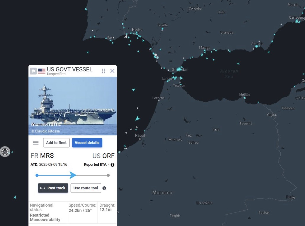 ジェラルドフォードさんがジブラルタル海峡を通って、