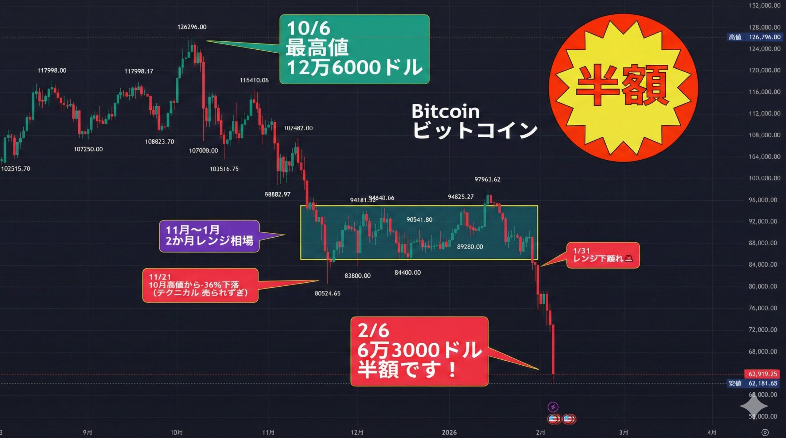 ビットコインのチャートに半額シールを張ってる人もいますた。